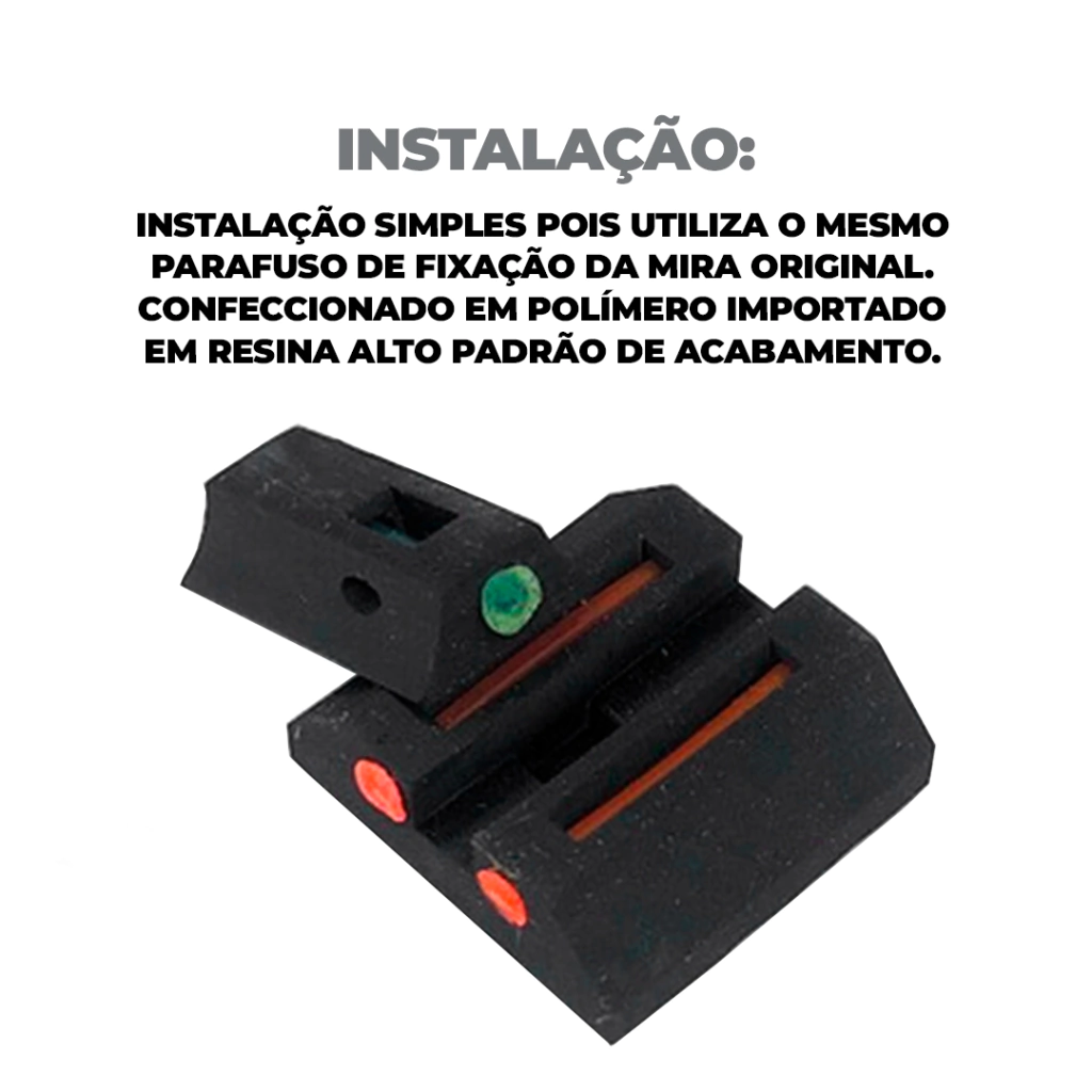 A Alça e Massa de Mira com fibra óptica para Taurus G2C 9mm/.40 é um conjunto que oferece melhorias significativas na precisão e visada Sua instalação é simples, por utilizar o mesmo parafuso de fixação da mira original.