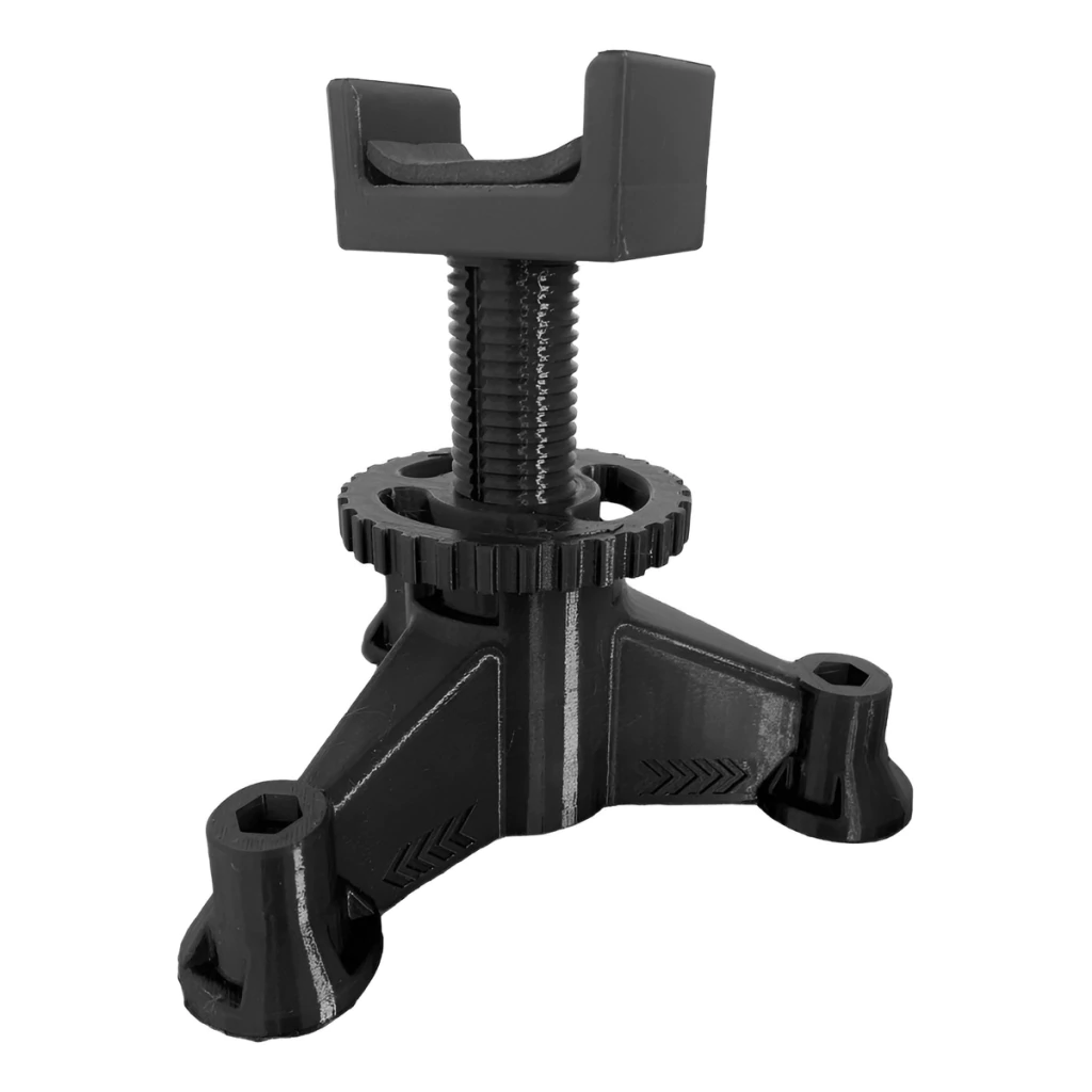 O Apoio Tripé Ajustável é o acessório ideal para quem busca estabilidade e precisão durante o ajuste de mira ou luneta em rifles, carabinas e espingardas. Produzido em polímero resistente, também é perfeito para expor suas armas em prateleiras e estantes com segurança e elegância.