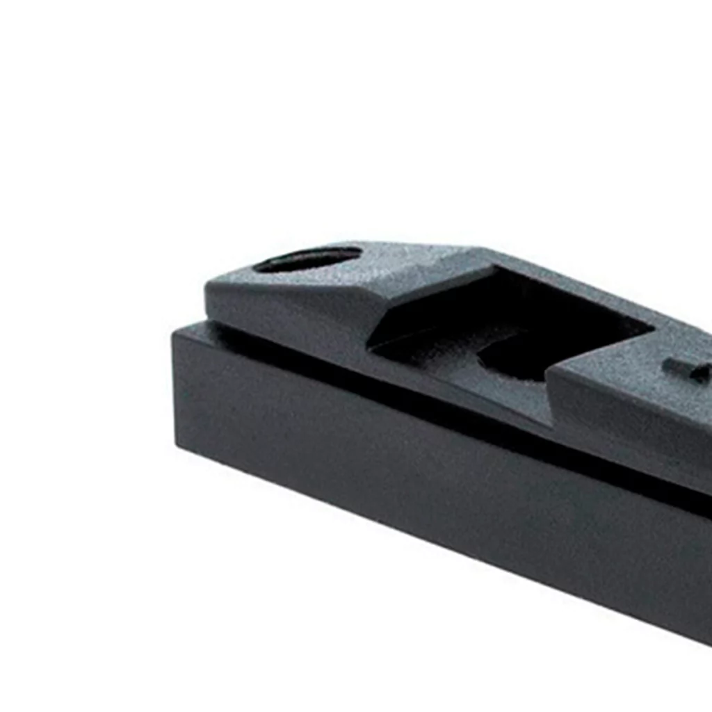 Massa de Mira com Fibra Óptica: A parte superior da base, que possui uma fibra óptica para auxiliar na mira.