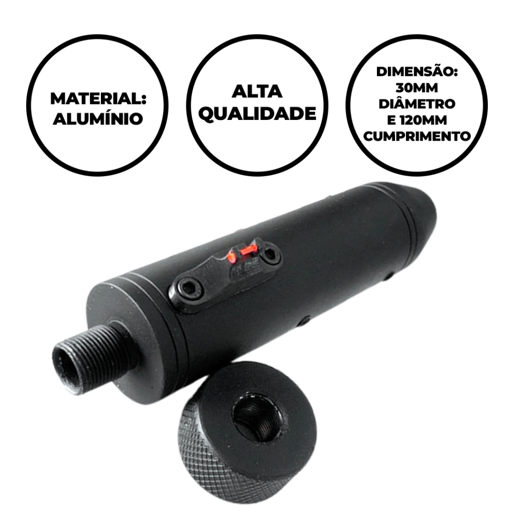 Dimensões: 30mm de diâmetro e 120mm de comprimento