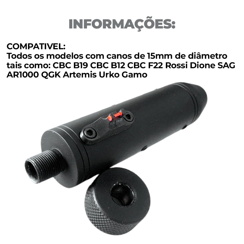Compatibilidade: canos de 15mm de diâmetro, B19, B12, F22, G2, Rossi Dione, SAG AR1000, QGK Artemis, Urko, Gamo