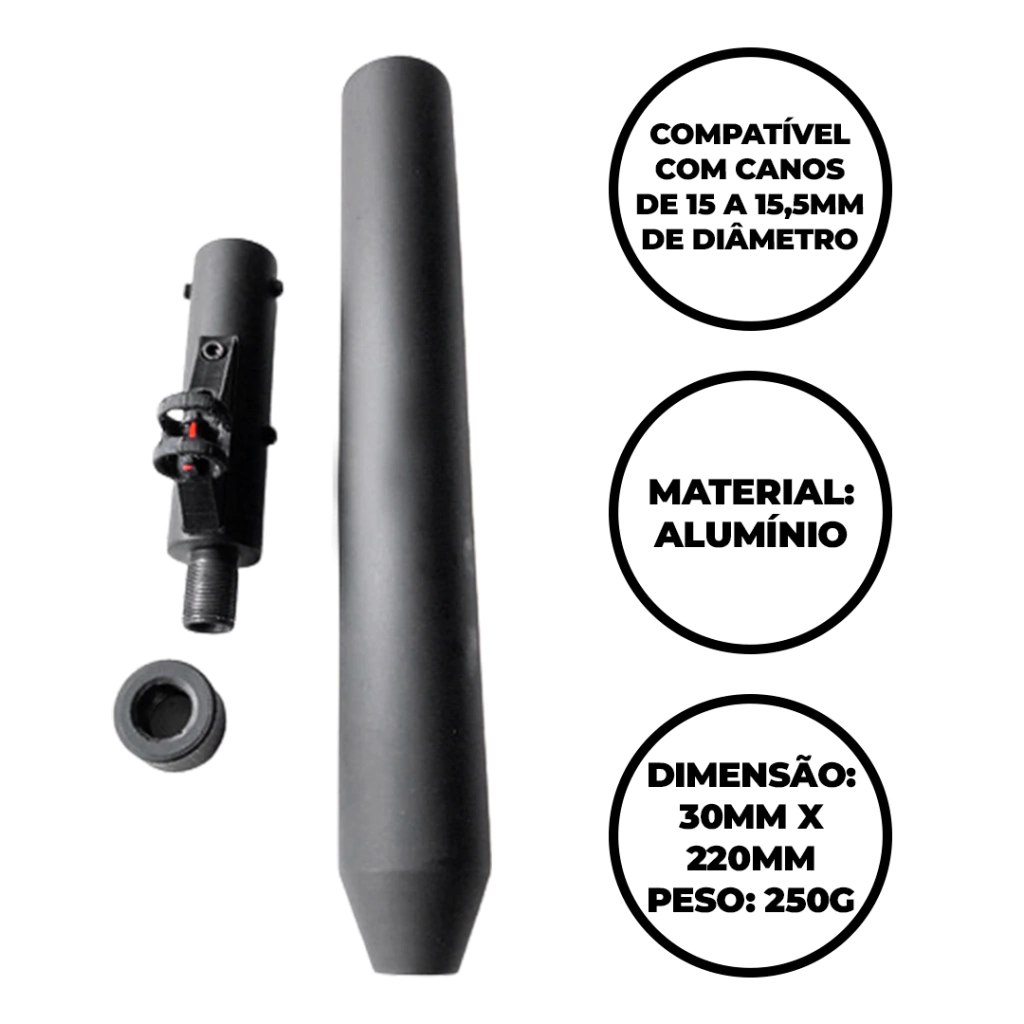 O Supressor De Ar 5,5mm Muzzle C/ Mira, não apenas proporciona um visual elegante, mas também oferece benefícios práticos, aprimorando sua experiência de tiro, elevando o desempenho da sua carabina de ar comprimido.