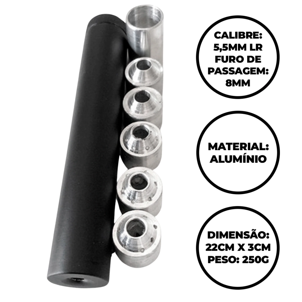 O Supressor De Ar Desmontável C/ Adaptador Canos 14mm Alumínio, não apenas proporciona um visual elegante, mas também oferece benefícios práticos, aprimorando sua experiência de tiro, elevando o desempenho da sua carabina de ar comprimido.
