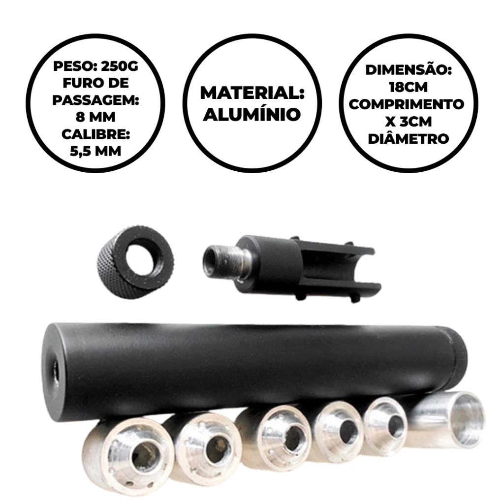 O Supressor De Ar Desmontável C/ Adaptador P/ Cbc Jade, não apenas proporciona um visual elegante, mas também oferece benefícios práticos, aprimorando sua experiência de tiro, elevando o desempenho da sua carabina de ar comprimido.