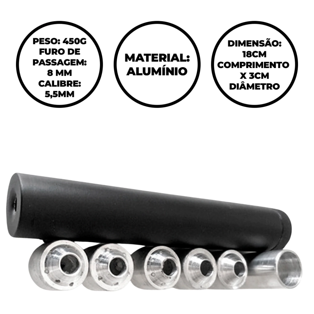 O Supressor De Ar Desmontável Rosca 1/2x20, não apenas proporciona um visual elegante, mas também oferece benefícios práticos, aprimorando sua experiência de tiro, elevando o desempenho da sua carabina de ar comprimido.