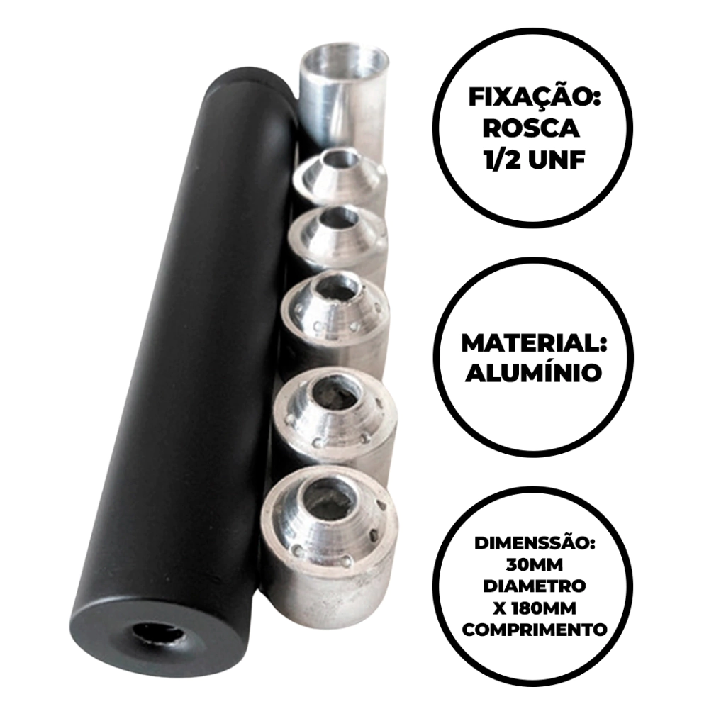 O Supressor De Ar Rossi R8 6,65mm Desmontável Em Alumínio não apenas proporciona um visual elegante, mas também oferece benefícios práticos, aprimorando sua experiência de tiro, elevando o desempenho da sua carabina de ar comprimido.
