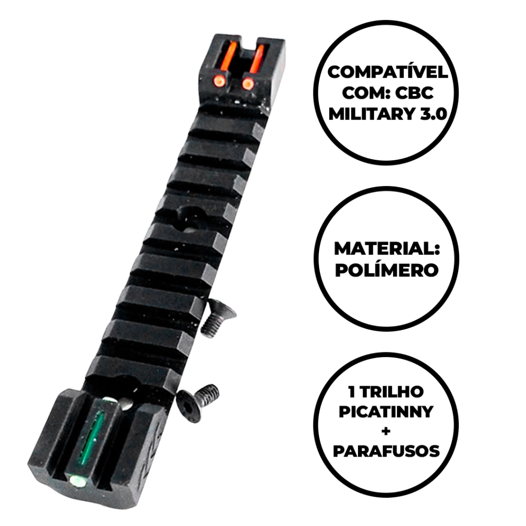 O Trilho Picatinny com Mira de Fibra Ótica CBC Military é uma solução inovadora e robusta projetada para elevar a performance e precisão.